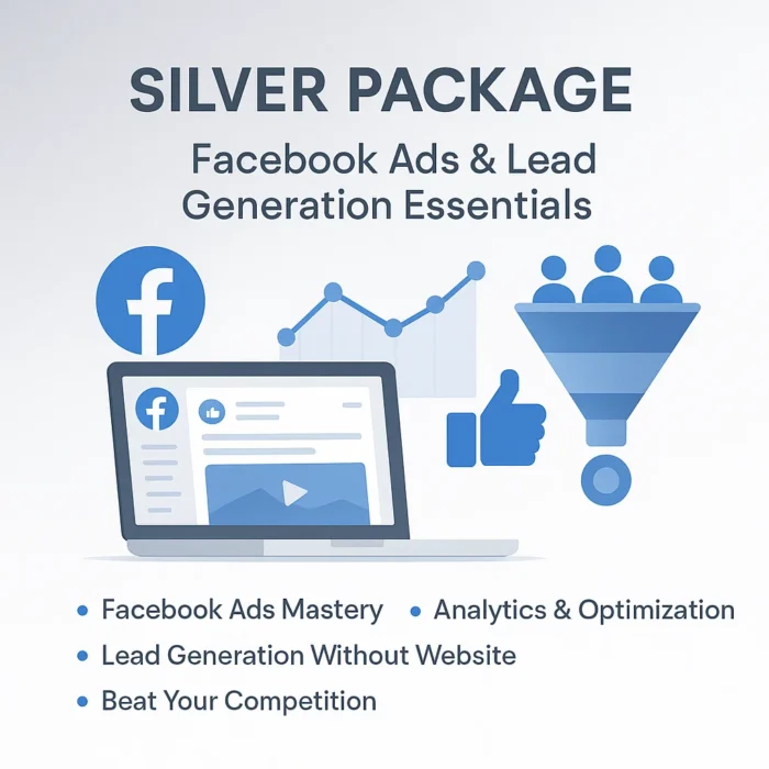 The Silver Package is designed to give you a strong foundation in Facebook advertising and lead generation. This bundle is perfect for those who are just starting their digital marketing journey or want to focus specifically on mastering paid advertising and competitive positioning.
